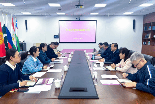 座谈会上,职业教育学院院长赵文平汇报了中国—上海合作组织职业技术教育合作中心的建设背景、发展现状及未来设想。