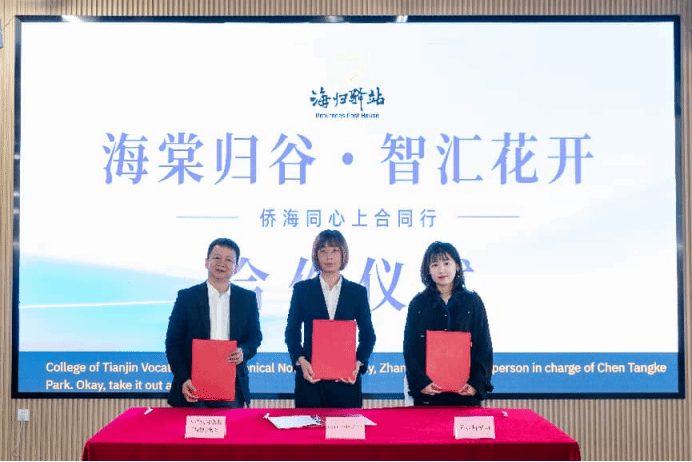 活动以“海棠归谷·智汇花开——侨海同心上合同行”为主题,海归驿站联动政企校侨多方资源,搭建国际人才交流合作平台。活动现场,天津职业技术师范大学党委常委、副校长米靖致欢迎词;天津职业技术师范大学职业教育学院党委副书记、院长,中国-上海合作组织职业技术教育合作中心秘书处副处长(兼)赵文平解读上合组织框架下职业教育国际化合作发展内涵与实践路径;北方人才市场能建中心国际部部长田小珊宣讲国际人才服务举措与成果;天津商务职业学院、天津工业大学外籍留学生代表依次发言,分享在津学习与跨文化体验;马政副部长为天津职业技术师范大学等6名优秀留学生代表颁授“海归驿站国际学生津帆大使”称号;天津职业技术师范大学成功与致公党天津市委会海归驿站、陈塘科创园(天开多点)、天津创龙创业科技孵化器(天开津南)、天津晶视智能科技有限公司、天津璐珩智能科技有限公司等签署多份校企、校地合作备忘录,声声落笔皆是合作共赢的期许。会后,留学生走进上合职教中心、鲁班工坊体验区、劳动教育综合情景工作坊,沉浸式感受天津职教的国际风采与硬实力。