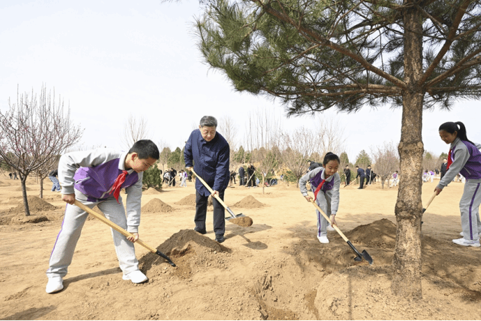 中共中央总书记、国家主席、中央军委主席习近平30日上午在参加首都义务植树活动时强调,良好生态人人共享,也需要合力共建。要组织动员全社会广泛参与植树造林,为山川大地增添锦绣,让中国式现代化的底色更加亮丽。